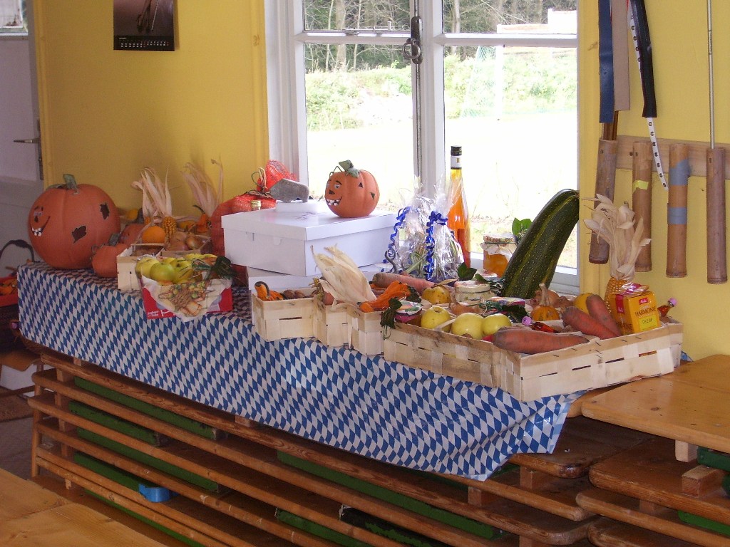 Als kleines Gauditurnier war die Veranstaltung auf 50 Schützen beschränkt und der Parcours mit 14 Kürbissen bzw. Auflagen mit entsprechenden Motiven bestückt worden.Eine Einschiessmöglichkeit ist auf dem Sportplatz direkt neben einer kleinen Hütte gegeben, die auch die Turnierbesucher locker unterbrachte. Im Turniergeld war auch gleich noch eine Brotzeit enthalten mit der sich die Teilnehmer am späten nachmittag stärken konnten. Aber auch vor dem Start stand eine Verpflegung mit Kaffee und Kuchen bereit.