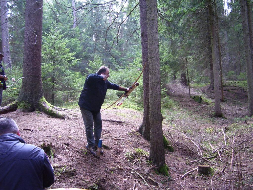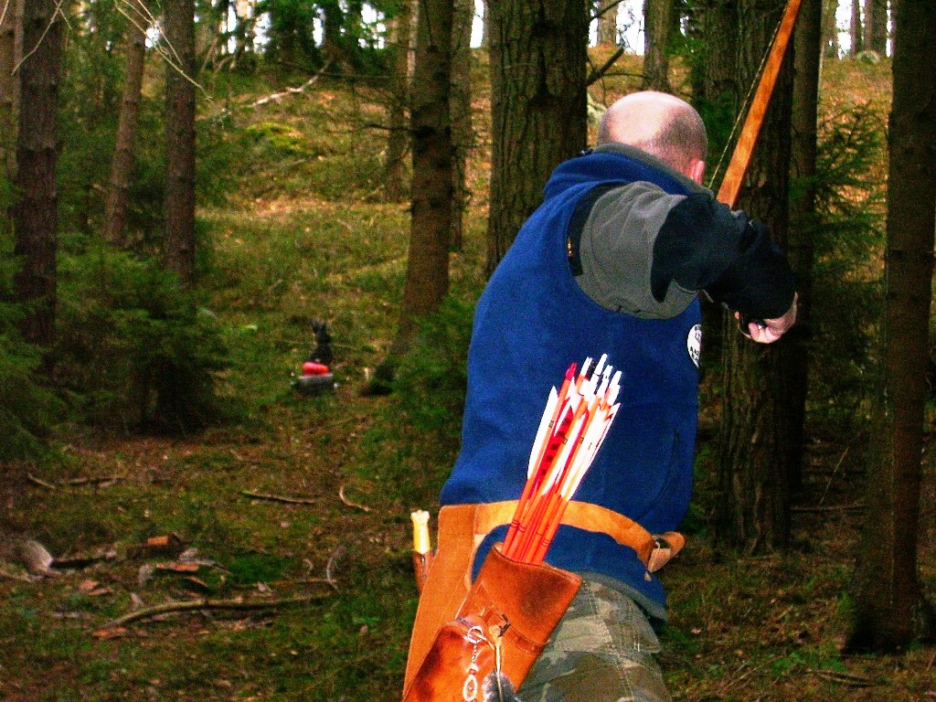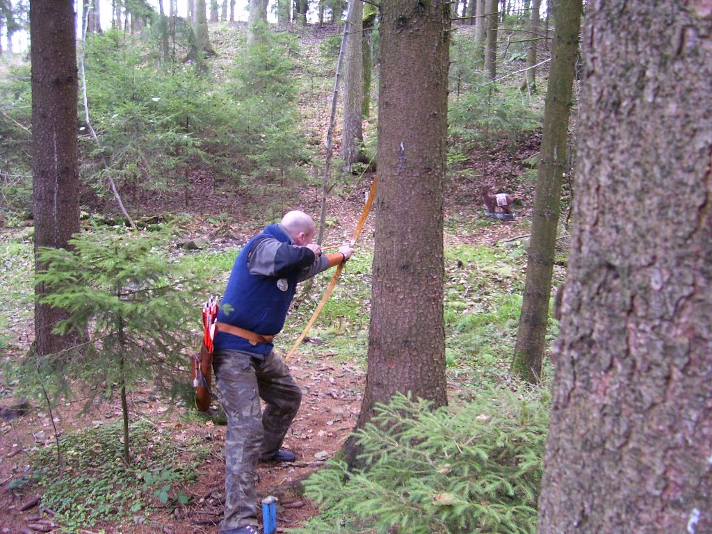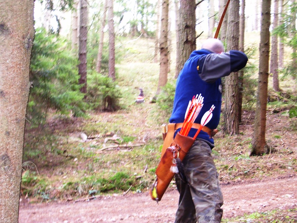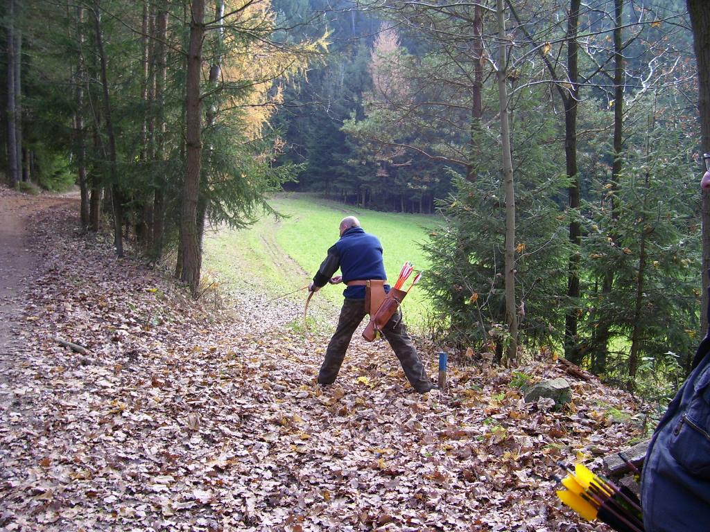 Bergauf- und bergab Schüsse oder Schüsse über Senken stellen bei vielen Zielen eine neue Herausforderung an die Entfernungsschätzung dar. Die Tücke des Objekts war im Gegensatz zu manchen "weichen" 3D Tieren gelegentlich auch darin zu suchen, dass so ein Kürbis schon einen relativ deutlichen Treffer braucht um den Pfeil zu halten bzw. einen eindeutigen Streifschuss erkennen zu lassen. Gelegentlich prallte ein Pfeil schonmal ab, der die Kürbishaut eben nicht mehr anreissen konnte. Als besonders widerspenstig stellte sich für unsere Gruppe ein Flaschenkürbis heraus, dessen Stängel wie ein Henkel gebogen war und damit natürlich den Pfeilen eine wie magisch geöffnete Lücke bot, die zielsicher zum größtenteil genutzt wurde.