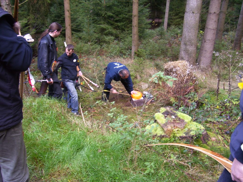 Zum Jahresausklang mit den 3D Turnieren war ich am 15.11.2008 noch beim Kürbiskopfschiessen der Rosenholzschützen in Unterlintach. Die Idee mal nicht auf die üblichen Tiermodelle und -scheiben sondern auf Kürbisse zu schiessen fand ich gleich für recht herbstlich passend und witzig und war vor allem gespannt wie die Pfeile wohl so den Beschuss überstehen würden.