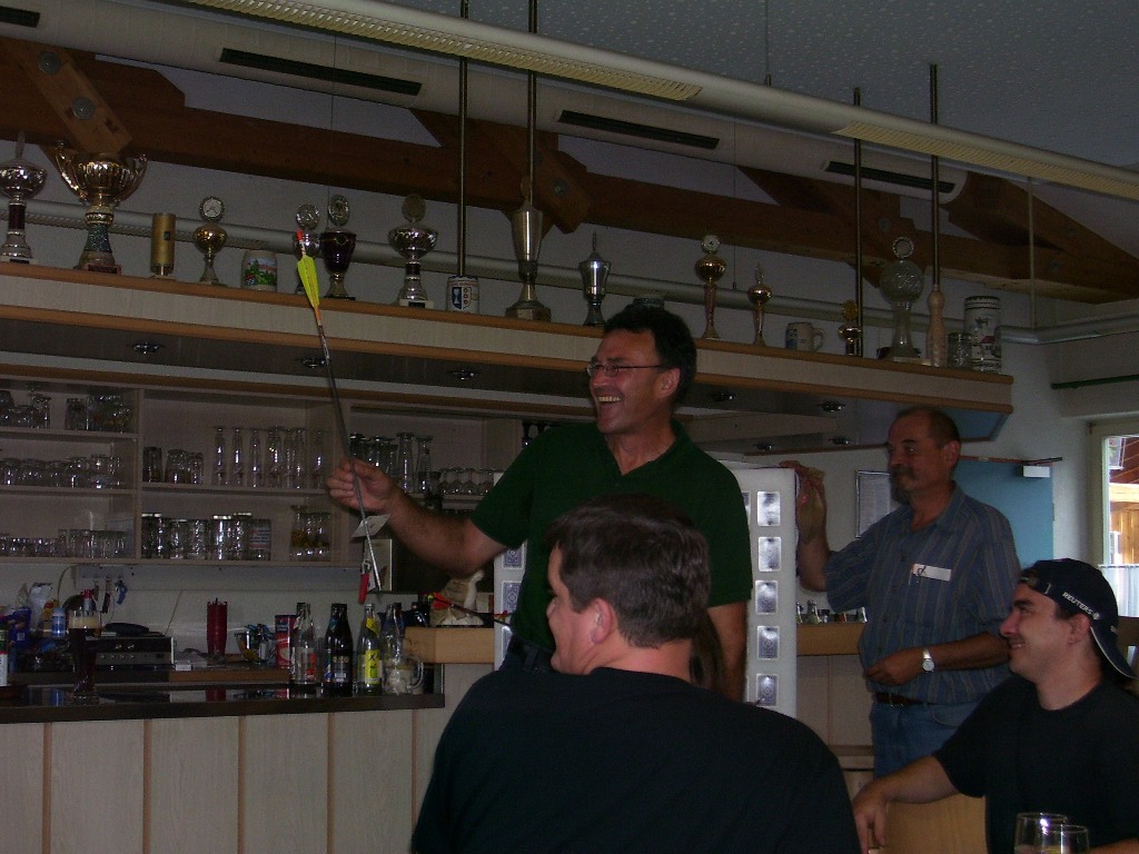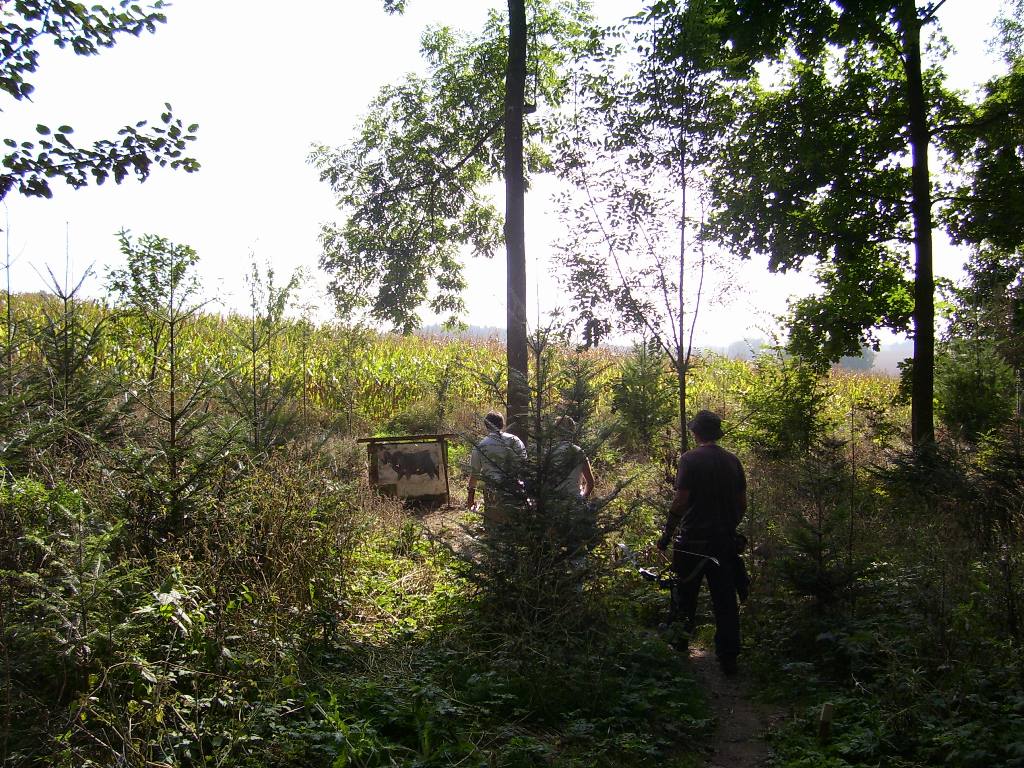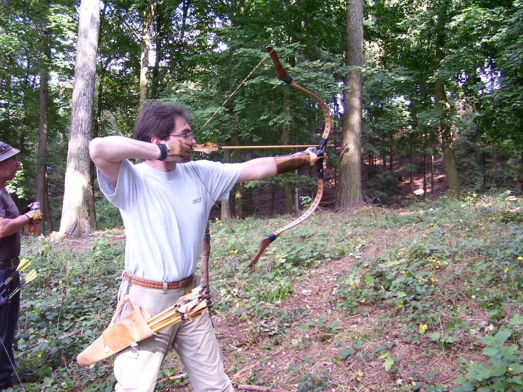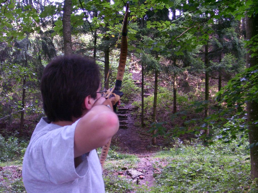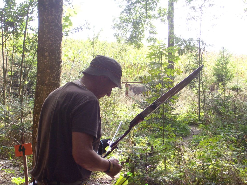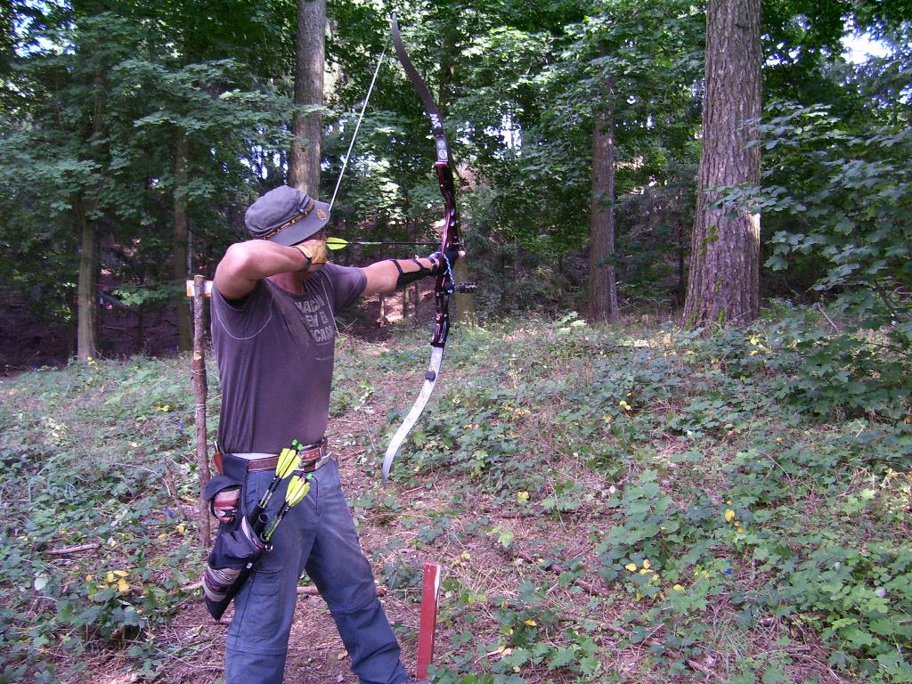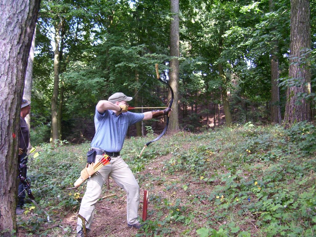Erstes 3D Turnier in Niederkam des VfL Landshut-Achdorf 1920 e.V.Am 20.09.2009 veranstaltete der VfL Landshut sein erstes 3D-Turnier. In dem von uns gern besuchten Parcours bei Niederkam versammelten sich über 50 Teilnehmer. Zugegeben - wir waren etwas skeptisch ob sich diese Teilnehmerschar auch in dem kleinen Parcours ohne Stauungen verteilen würde, aber wir wurden schnell eines besseren belehrt. Treffpunkt zur Anmeldung war das Vereinsheim des VfL Landshut von wo aus wir zum Parcours weiterfuhren. Die Gruppen waren klein genug gehalten so dass sich niemand ins Gehege kam und zumindest bei unserer Gruppe keinerlei Stauungen oder Wartezeiten zu bemerken waren. Dass alle Ziele so gestellt waren, dass auch ein fehlgegangener Pfeil schnell wieder gefunden werden konnte tat mit Sicherheit sein Übriges dazu. Überhaupt wurden hier Pfeilfangteppiche aber auch die natürliche Gegebenheiten als Pfeilfang bestens ausgenutzt. Da sich zum großen Teil durch den Parcours ein kleiner aber steiler Hang zieht (Auf- und Abstieg übrigens sehr schön gelöst mit behelfsmässigen Stufen am Hang, so daß auch hier Sicherheit gegeben ist), waren einige schöne Bergauf- und vor allem fordernde Bergabschüsse möglich. Diese wurden zum Teil inzwischen auch deutlich weiter gestellt, so dass sich die Herausforderung doch merklich erhöht hat. Überhaupt muss herausgestellt werden, daß man doch bemerkenswert viele Weitschüsse in den "Parcours der kurzen Wege" gepack hat, die natürlich mit zum Interessantesten gehörten. Richtig bewegliche Ziele (wie ein laufender Keiler o.ä., die ja unsere Favoriten sind) gab es zwar leider nicht, aber ein ähnliches Feeling konnte sich schon durch die an Seilen aufgehängten 3D-Vögel einstellen, die natürlich durch jeden Treffer oder Streifschuss in Schwingung versetzt wurden. Wie so üblich gehörte auch zu diesem Turnier natürlich ein Glücksschuß. Es galt auf eine Scheibe mit verdeckt angebrachten Spielkarten zu schiessen. Der Treffer des Herz-Asses konnte anschliessend die für den Glücksschuss ausgegebenen Beträge (pro Preil 1,- EUR) als Jackpott gewinnen. Zurück im Vereinsheim gab es für jeden Teilnehmer eine Urkunde mit Platzierung und Punktzahl - die Bestplazierten konnten natürlich wieder Sachpreise entgegennehmen. Einziger Wermutstropfen für Armin und mich war, dass wir die beiden einzigen waren, die mit Reiterbögen angerückt sind und sich damit natürlich auch keine eigene Wertungsklasse öffnen lies. Da hoffen wir mal auf rege Reiter- und/oder Primitivbogenteilnahme an den nächsten Turnieren und natürlich, dass der VfL Landshut wieder so ein Turnier veranstaltet, denn daß sie einen unterhaltsamen Nachmittag gestalten können haben sie hier deutlich unter Beweis gestellt. Tom