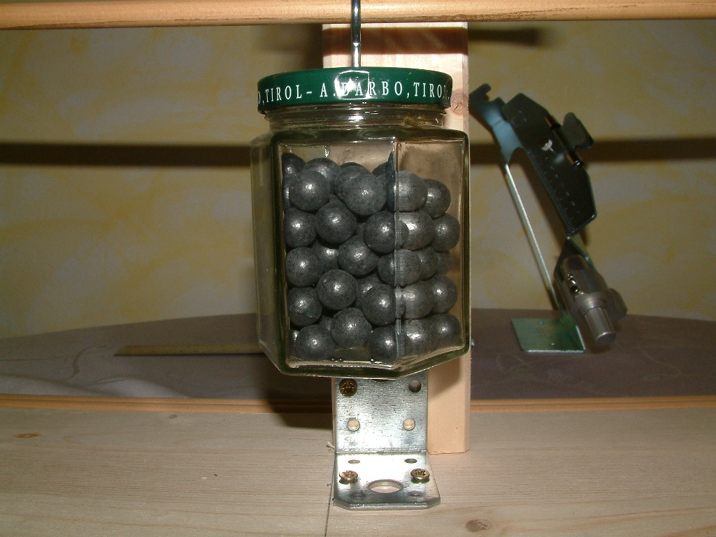 SpinetesterSowohl die Turnierausschreibungen als auch unser Reiterbogenkauf haben uns wieder zu den Holzpfeilen zurückgeführt. Um das Flugverhalten beim Holz etwas genauer hinzubekommen, waren wir also gezwungen uns auch mal genauer mit den genauen Gewichten und natürlich dem Spinewert unserer Schäfte zu beschäftigen. Während eine Feinwaage relativ günstig erhältlich ist, werden für Spinetester zumeist doch gesalzene Preise verlangt - also war die Überlegung: Selber bauen! Fündig wurden wir im Internet mit einer Bauanleitung bei www.kaltokri.de , sowie mit einer Umrechnungstabelle für den Spinewert bei einer Messung mit einem 1000 Gramm Gewicht bei www.bogenblog.de . Armin (der bessere und begeistertetere Bastler von uns beiden) hat sich dem Projekt gleich mit Feuer und Flamme angenommen und aus Holz, ein paar Modeelbauzwingen, sowie einer digitalen Schieblehre um Messungenauigkeiten in dieser Hinsicht auszuschliessen. Als 1000-Gramm-Gewicht hab ich ein Marmeladenglas vorgekramt und mit Bleikugeln befüllt (hatte ich noch als Munition für einen Vorderlader zuhause). Tom