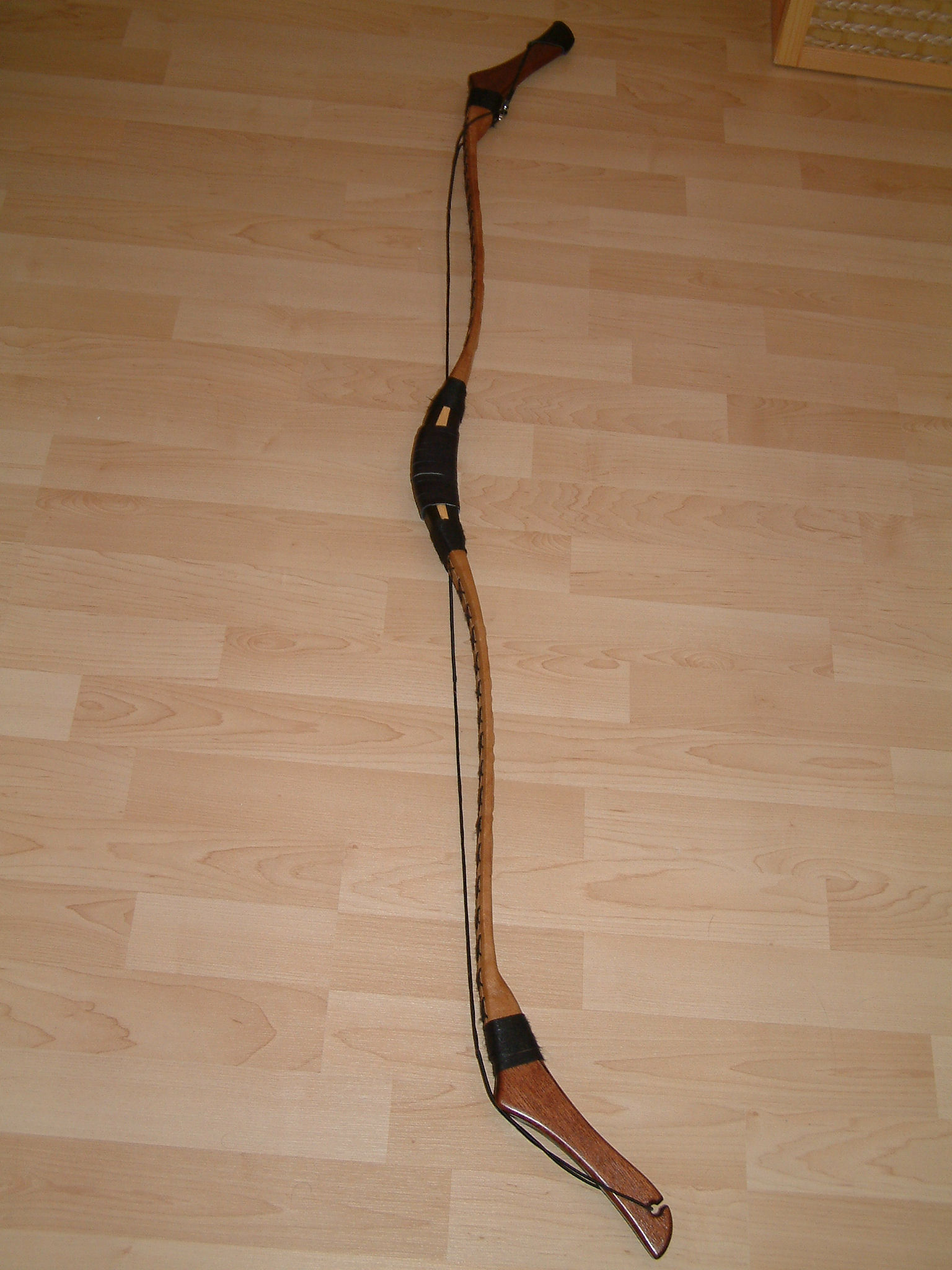 Er wird jedoch ein „Spaßbogen“ bleiben denn alleine schon die Lederummantelung ist mir zu schade als das ich sie auf Dauer im Unterholz auf den Parcours zerkratzen möchte.