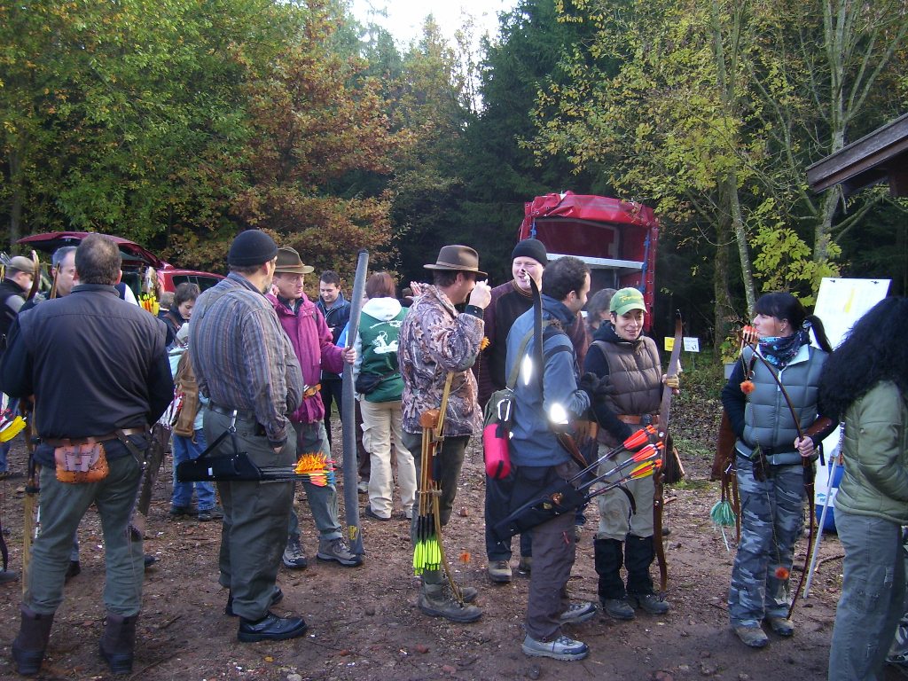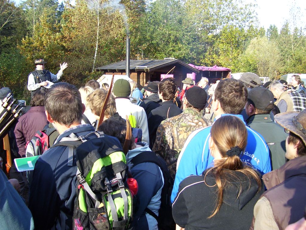 Die Waldschützen-am-Schwarzen-Kreuz Landau mussten sogar die Anzahl der Teilnehmer beschränken; der Andrang zu den Turnieren scheint sich von mal zu mal zu steigern. Dennoch waren wieder fast 230 Teilnehmer schon kurz nach 8:00 Uhr morgens am Turnierplatz versammelt. Schon die Menge an Fahrzeugen und der Blick auf die Autokennzeichen hat uns wieder erkenn lassen, dass viel mehr Pfeil-und-Bogen-Freunde unterwegs sind als wir uns das beim Beginn unseres Hobbys gedacht hatten.
